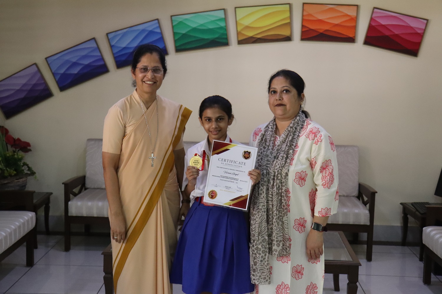 Varuni Goyal(4-D) won a medal and a certificate at Indian School Talent Search Exam(Online).